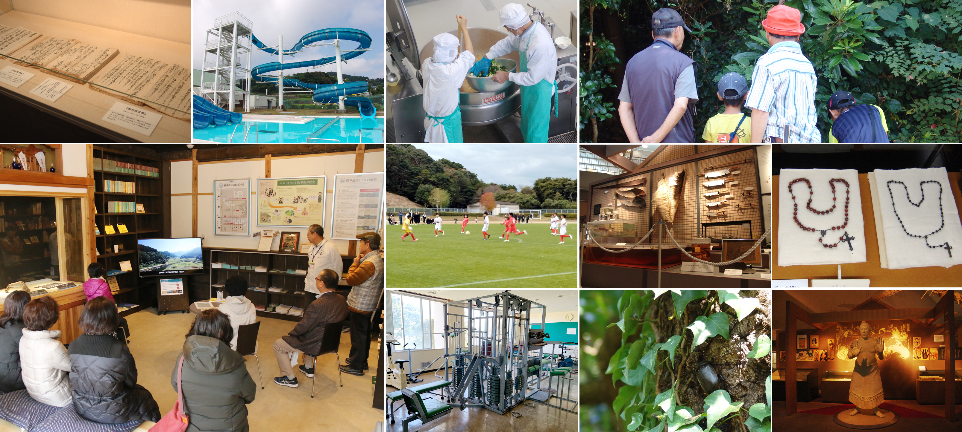 「島の館」では、江戸時代に日本最大規模を誇った益冨捕鯨の展示をはじめ、 長い迫害に耐えて受け継がれたかくれキリシタンの信仰、 豊かな自然の中で営まれてきた漁業や農業の姿を紹介しており、他では見られない 価値ある生月島の魅力を知っていただけると思います。